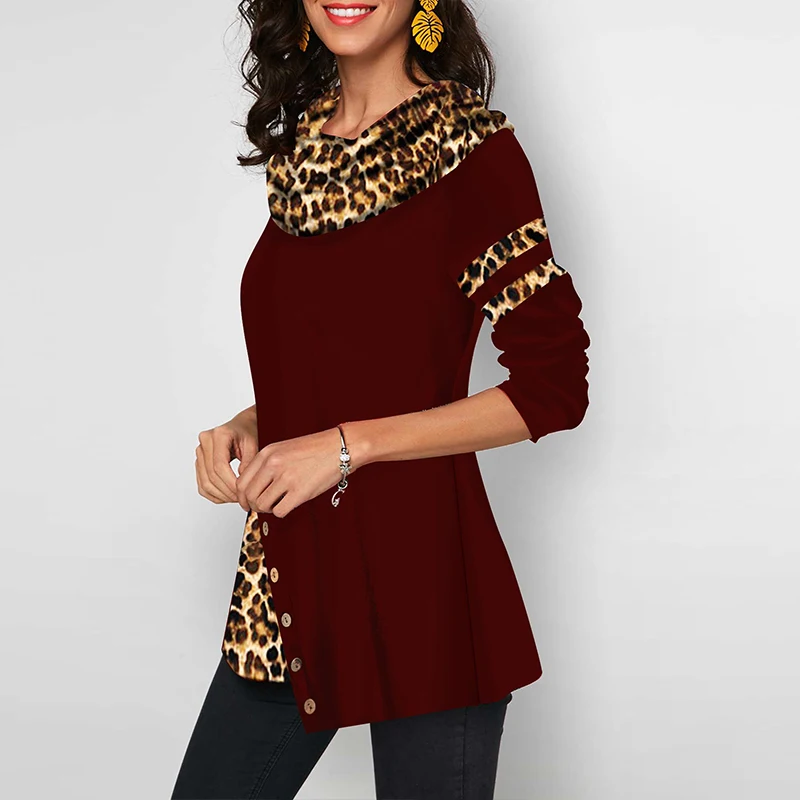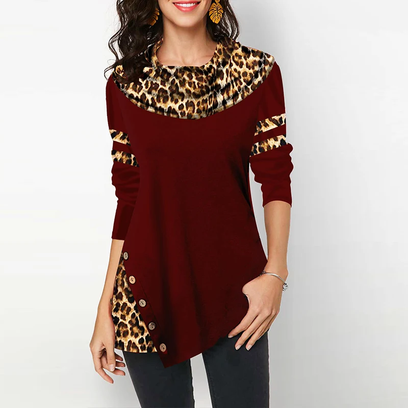 amazing Leopard Print Women's Blouses Shirts Casual Plus Size 2020 Spring Female Tunic Irregular Button Cot
