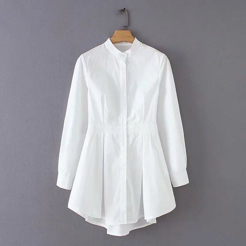 wonderful women elegant stand collar hem irregular pleats white blouse casual shirts office lady business fem