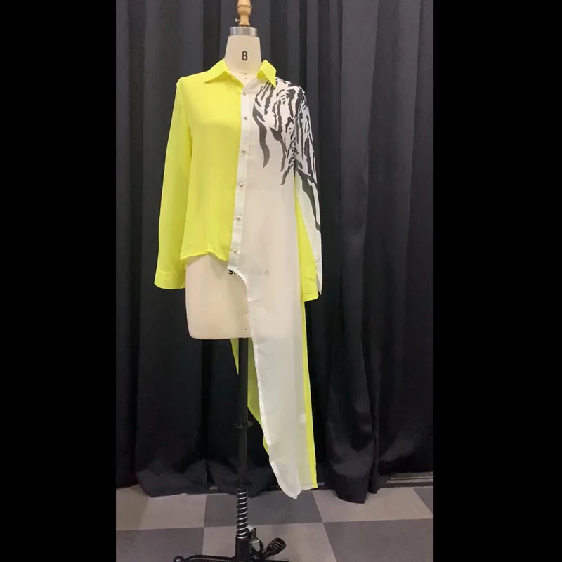 Very best Asymmetric Color Block Long Sleeve Long Blouse Shirt Yellow White Plus Size Sexy Transparent Oversi